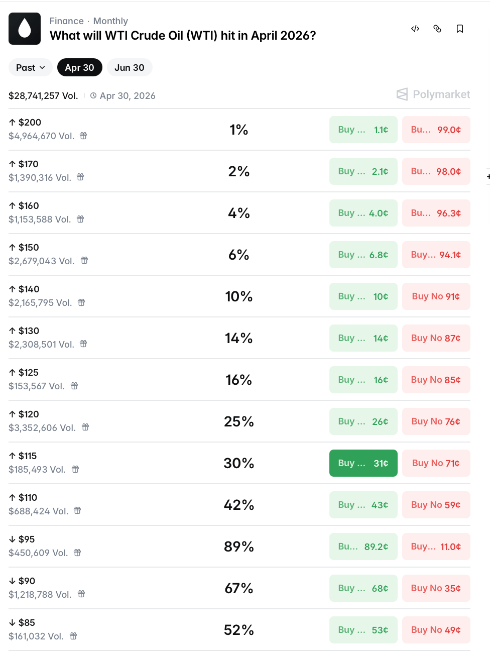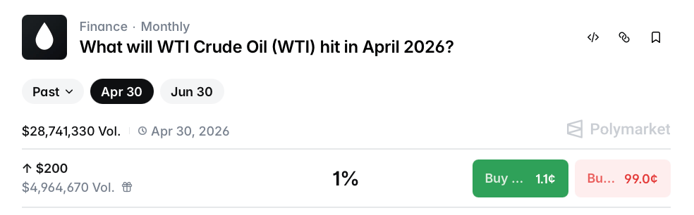 This isn't a bet on where oil closes at month end. It's a bet on whether oil tags a specific price level at any point during April — even for one minute.