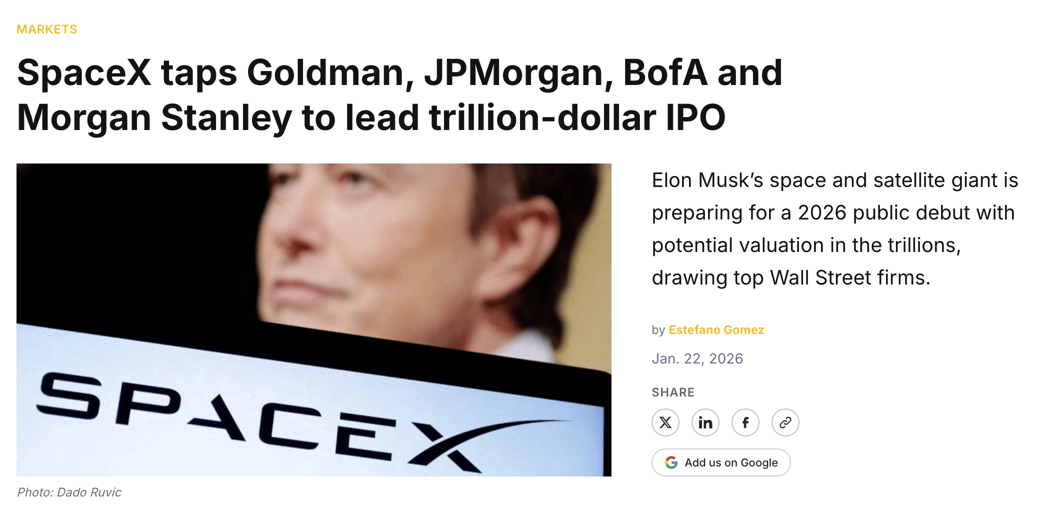 Which raises an interesting question nobody seems to be asking: what happens if SpaceX's prospectus lists Goldman and Morgan Stanley as co-equals at the top?