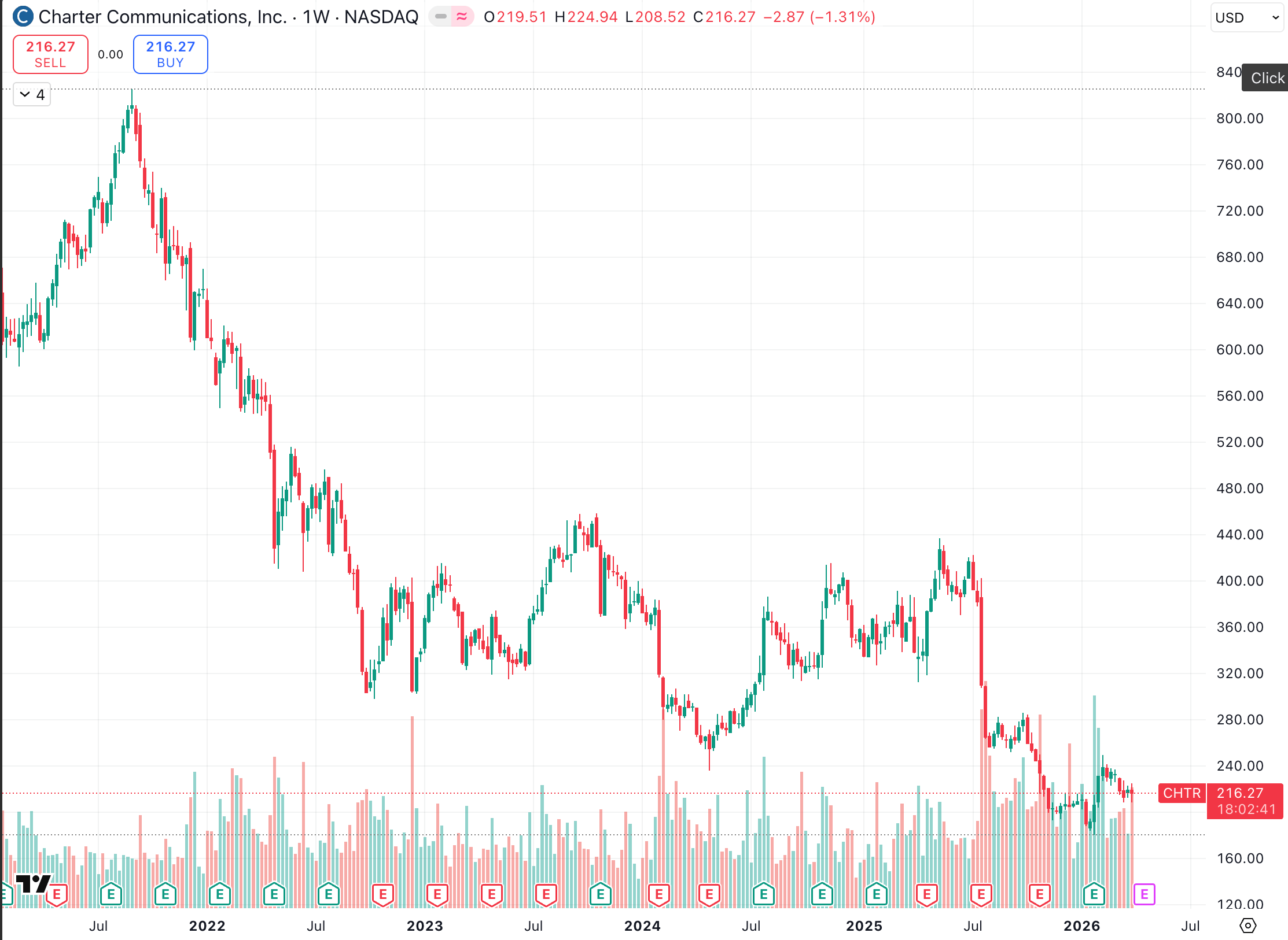 Down 30-50% from prior highs and trading near multi-year lows. The fallen giant narrative is real. But Charter is generating significant free cash flow, running a large national broadband network, and recently received regulatory clearances for sizable transactions. It remains a clear-cut large-cap core telecom name with active capital markets access.