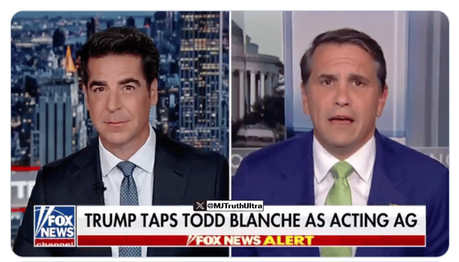 Now he's acting AG. He's already running the department, managing the politically sensitive probes, the Epstein files, the investigations of Trump's perceived enemies, the internal purges of officials deemed hostile.