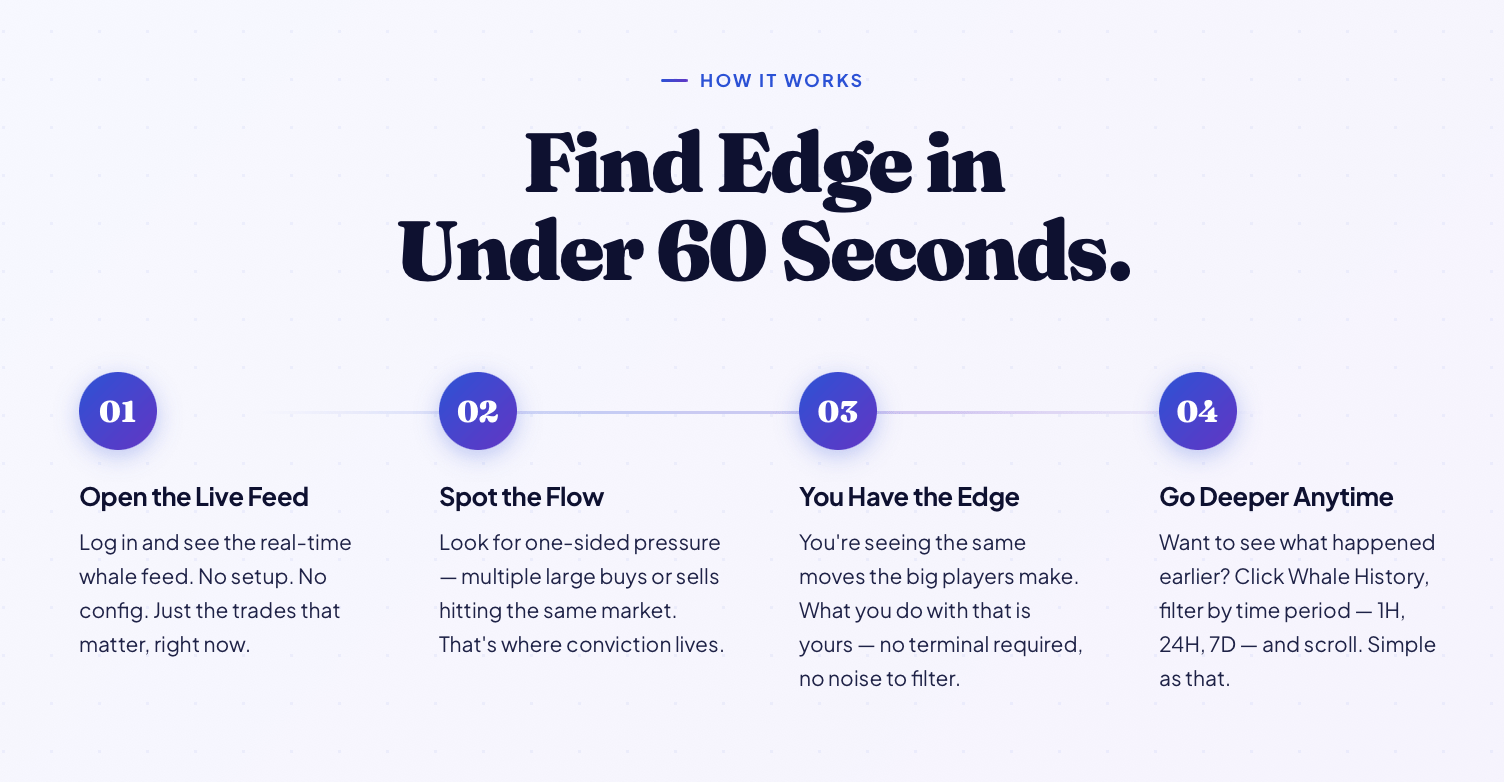 Real-time whale tracking for Polymarket. Watch 1,000s of trades. Choose your own. The cleanest capital flow tracker for prediction market traders.